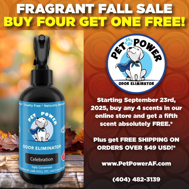 Life with our furry companions can sometimes get a little stinky. But it doesn't have to stay that way! Pet Power's awesome selection of super-powered scents are specially formulated to instantly eradicate unwanted pet odors and replace them with a pleasant lingering aroma that lasts for days!